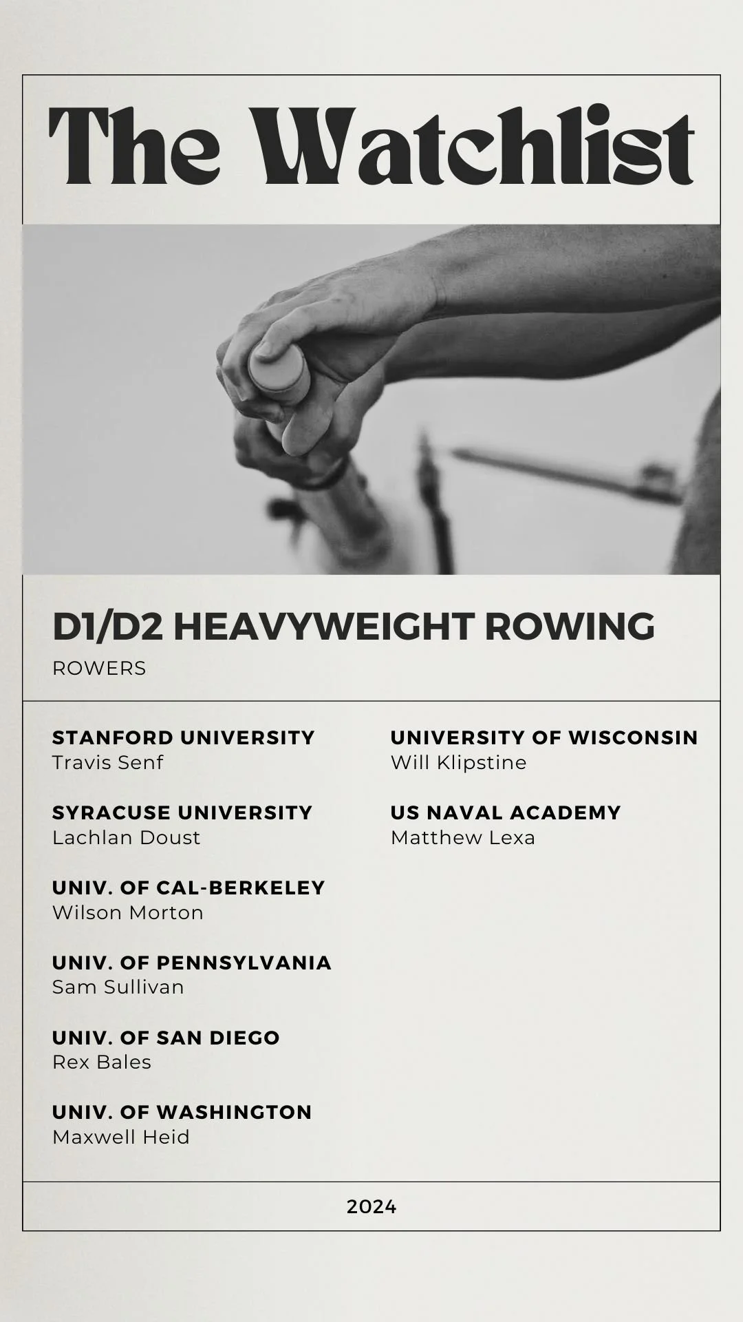 Nominated by their coaches and selected by the IRCA Awards & Polling Committee, we wanted to take a moment at the start of the season to recognize the top athletes across the entire landscape of men’s collegiate rowing. From U23 World Champions to future national team members and breakout athletes and coxswains from all divisions, these men and women are valued leaders in their athletic departments, trail blazers within their programs, and set the standard for performance and sportsmanship in D1/D2, D3, and lightweight men’s rowing.