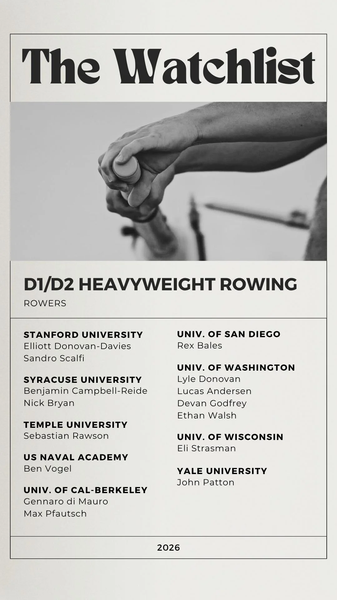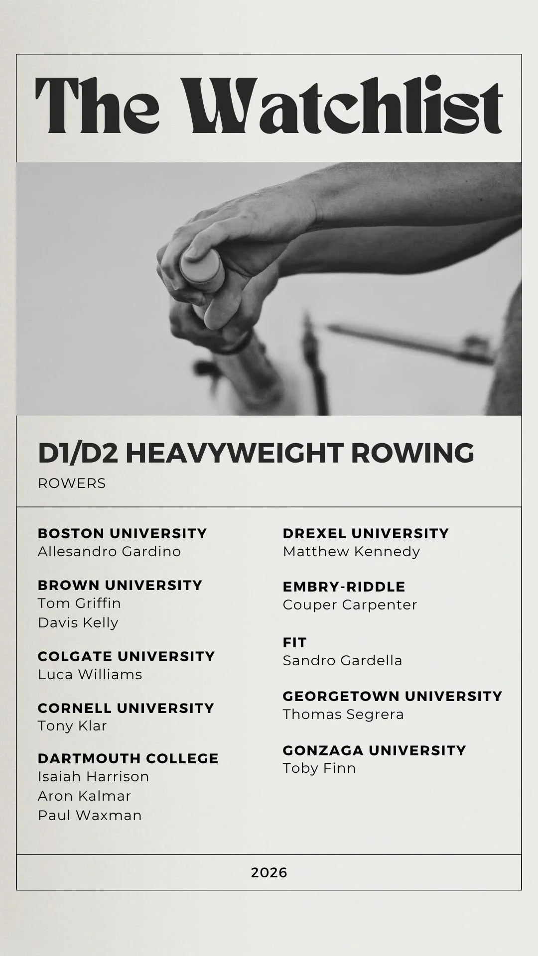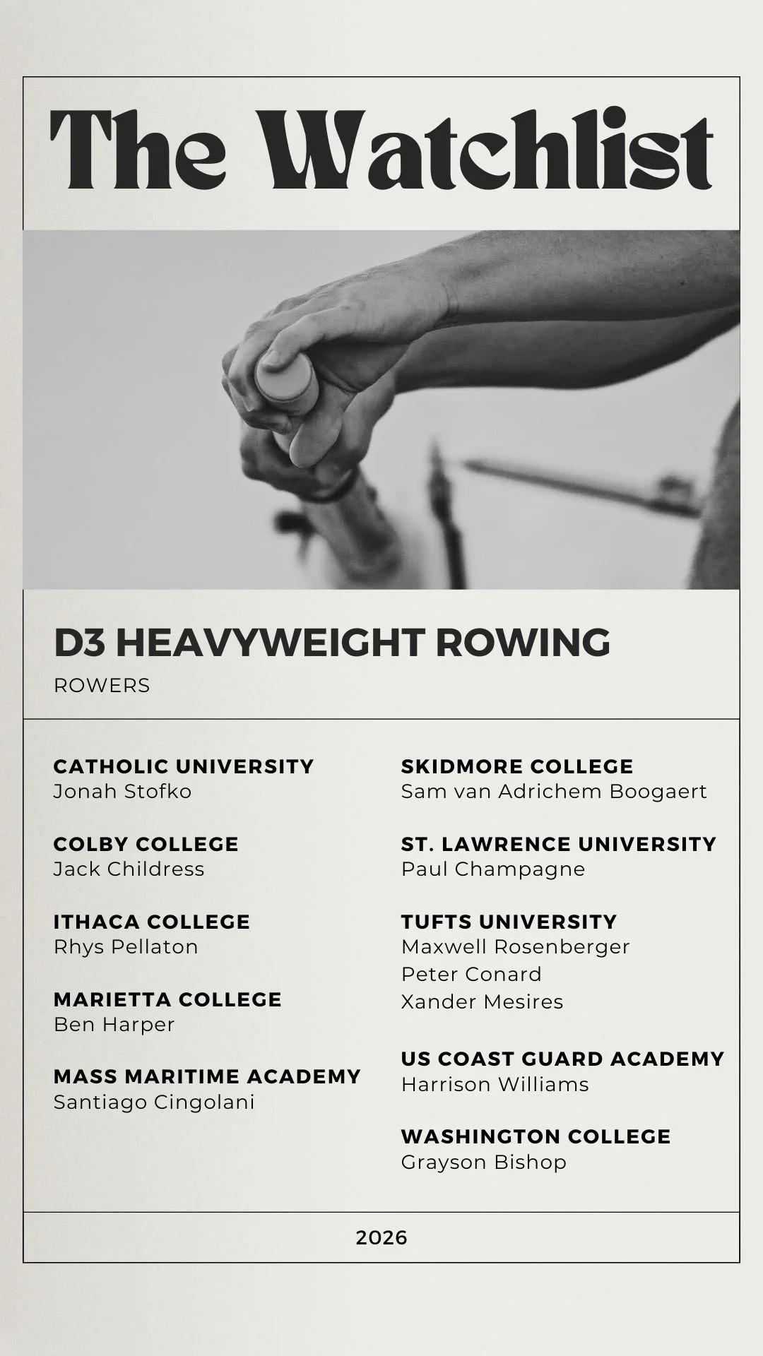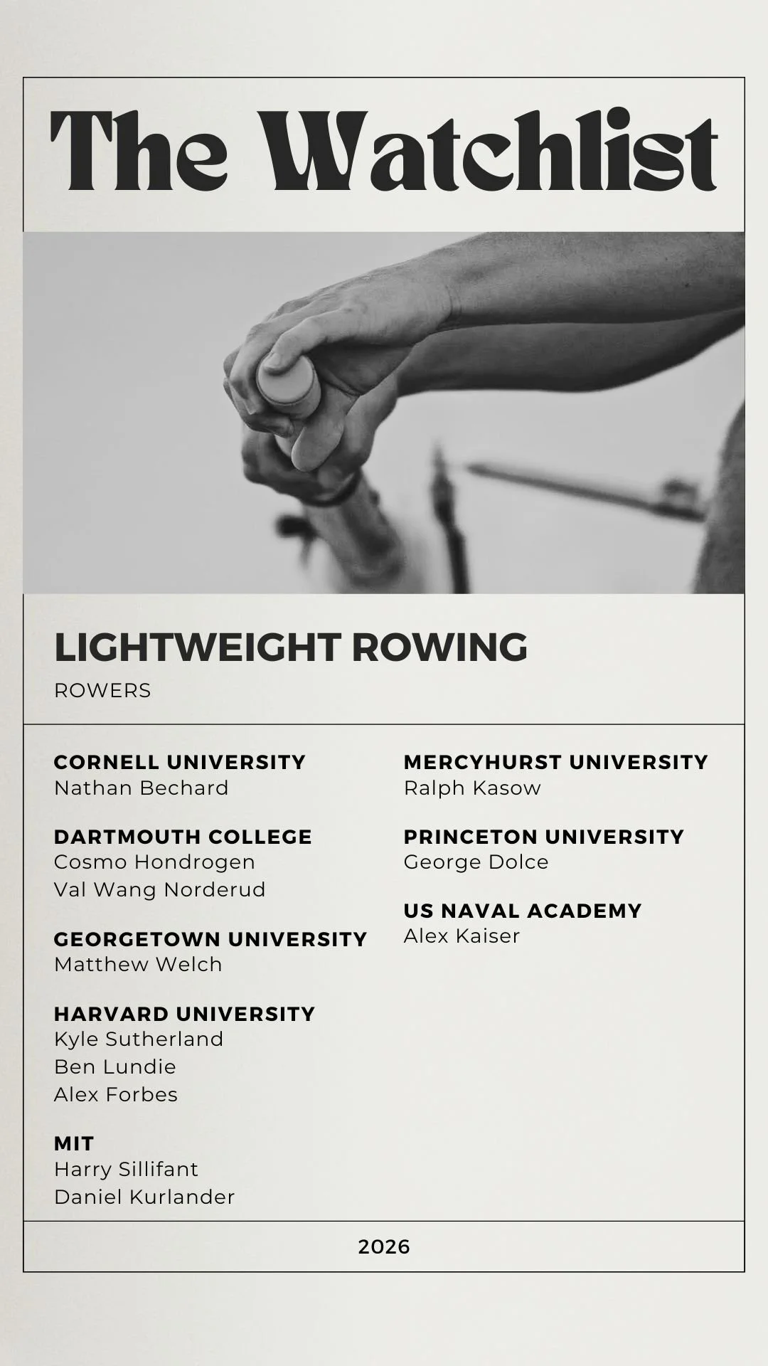 It is comprised of IRA National Champions, World Champions, Olympians, U23 and Henley Royal Regatta medalists, team captains, future national team athletes, and breakout rowers and coxswains from all three divisions. They are valued leaders at their institutions, trail blazers within their programs, and continue to raise the standard for performance and sportsmanship in D1/D2, D3, and lightweight men’s rowing.